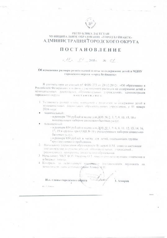 Документ об установлении размера платы, взимаемой с родителей (законных представителей)